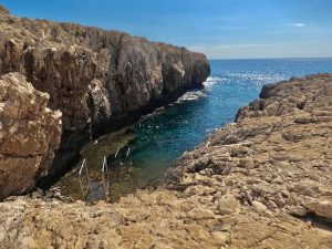 Situated under the cliffs on the south side of Cape Greko (close to the Tunnels and Caves Dive Site) is Canyon. The entry point is first accessed by a bit of off-road driving and then a long challenging walk down some cliffs followed by two vertical ladder to the waters edge. A good level of fitness and strength is required.